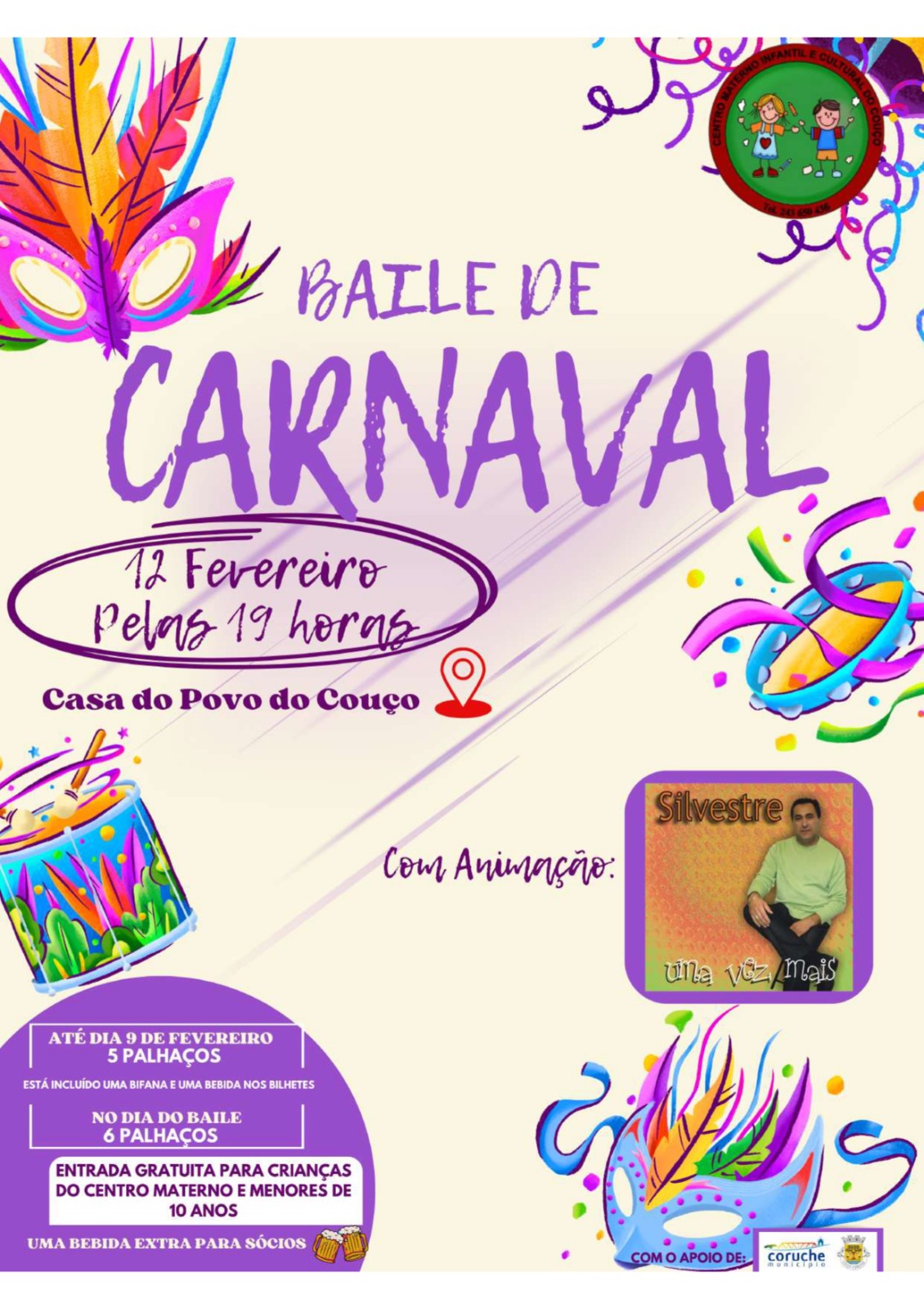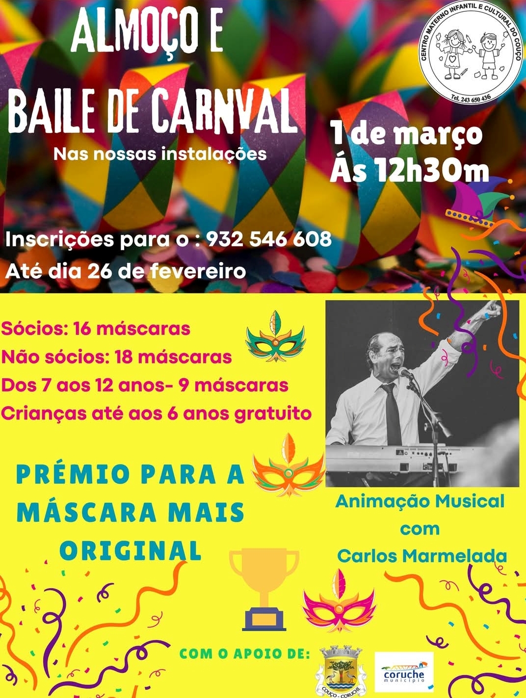 Almoço e Baile de Carnaval - 1 de Março, vem divertir te!!